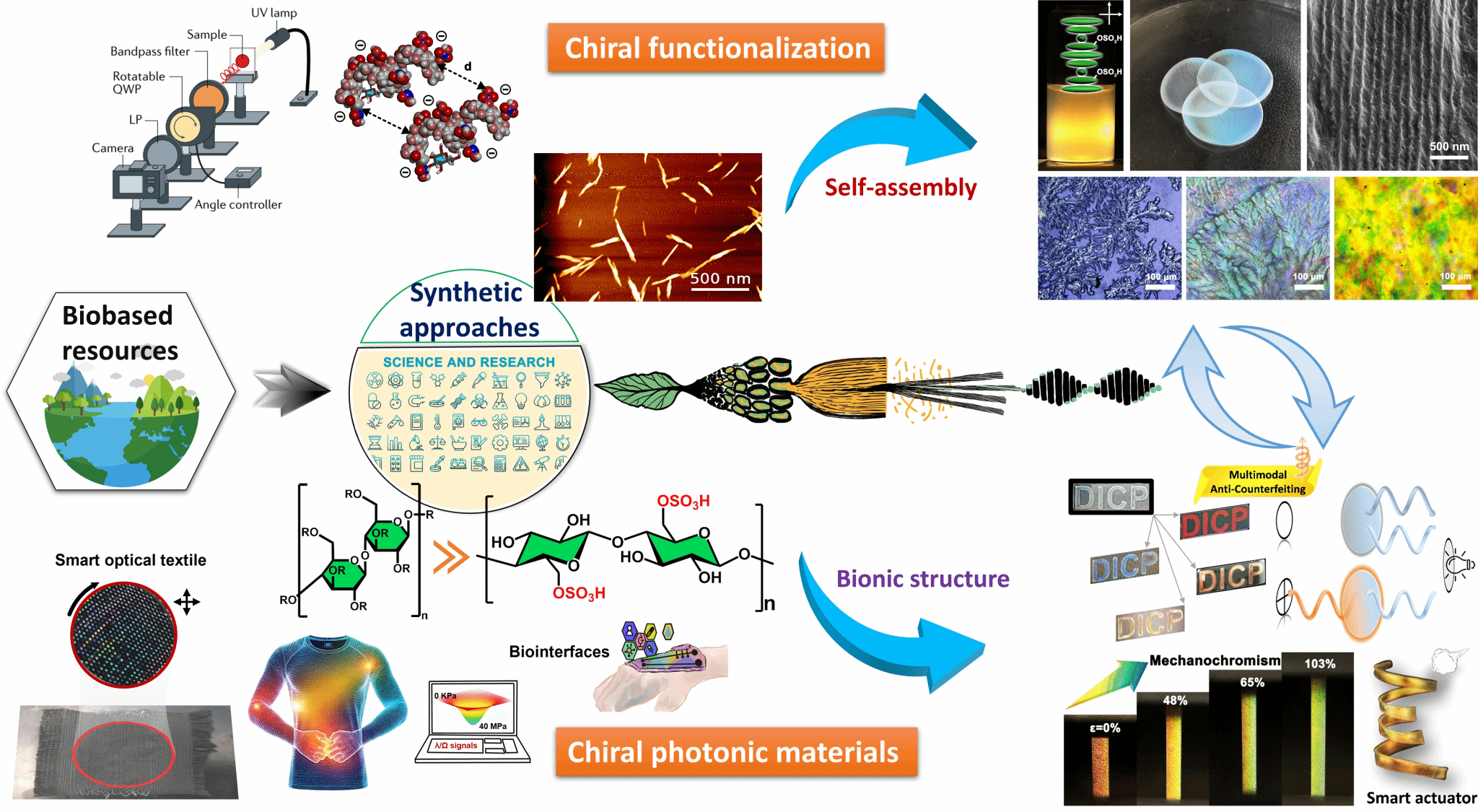 可持续纳米材料合成(如:纤维素纳米晶体、羟丙基纤维素和纳米甲壳素)及其手性自组装和纤维功能化开发