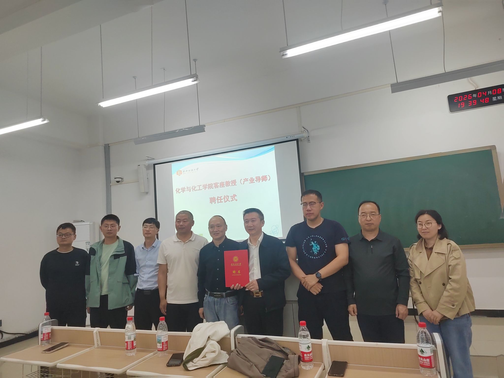 讲座结束后,客座教授(产业导师)聘任仪式正式举行。学院党委书记杜勇为刘文富书记颁发聘书,参会师生共同合影留念,定格产教携手共育人才的重要时刻。此次聘任,既是对刘文富书记专业能力与行业影响力的高度认可,也将为学院学科建设、人才培养工作注入新活力,为深化产教融合、优化人才培养模式提供重要支撑。