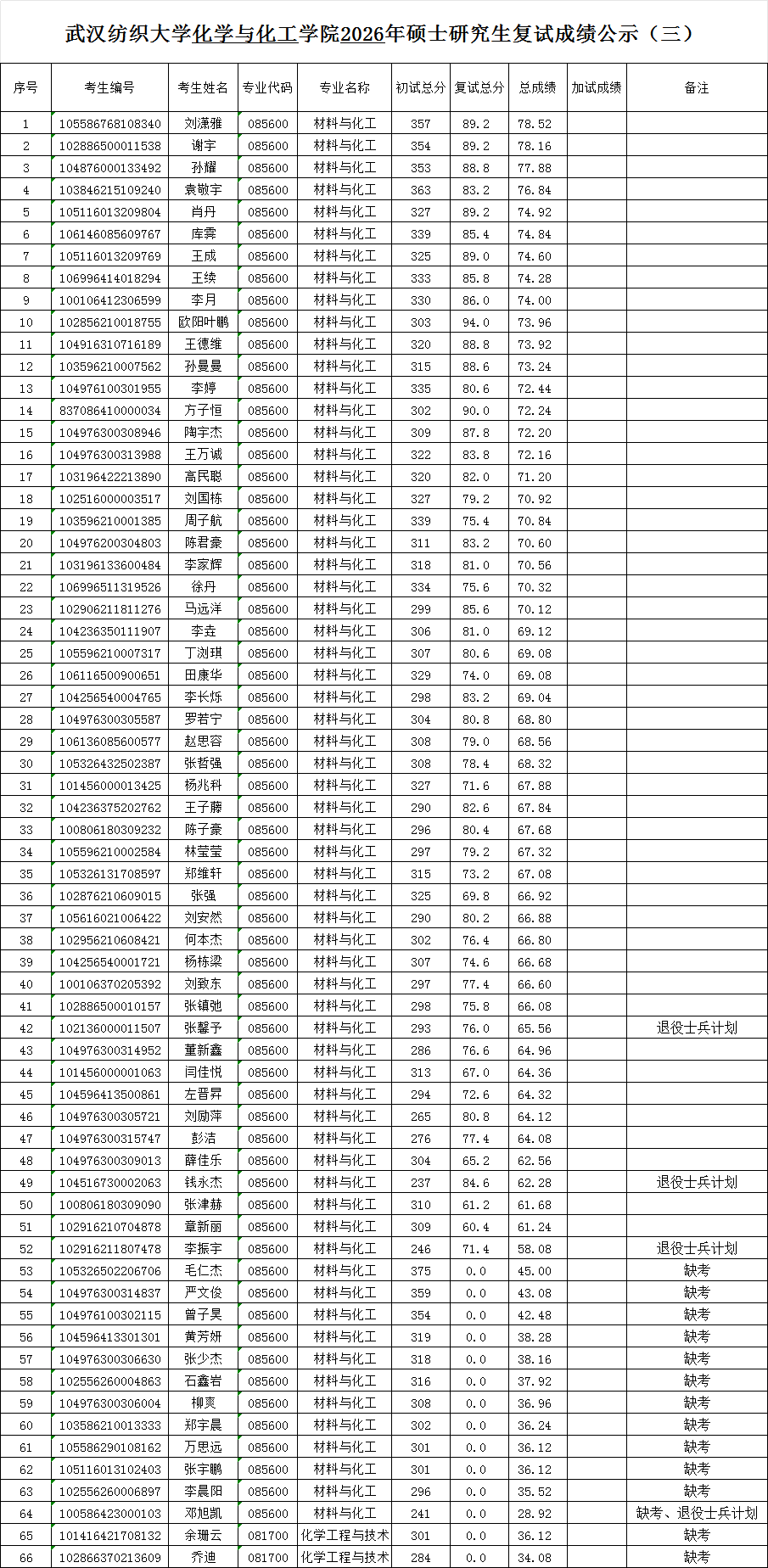 下一篇:武汉纺织大学化学与化工学院2026年硕士研究生复试成绩公示(二)