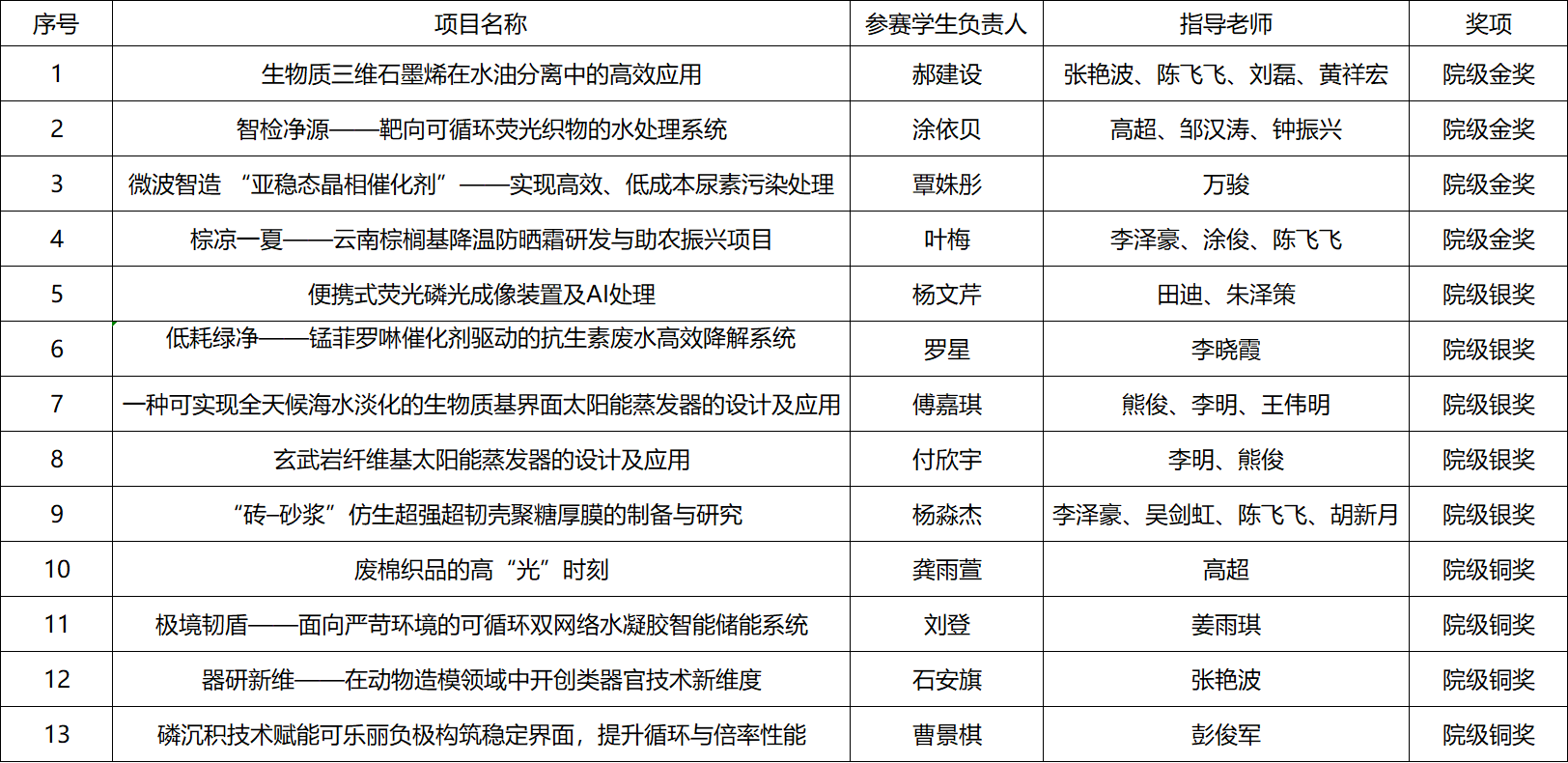 为进一步激发化工学子创新创业热情,培育优质科创项目,夯实学生科创实践与团队协作能力,根据学校及学院“科创杯”系列竞赛工作部署,我院已顺利完成本次“科创杯”院赛的项目征集、现场答辩、专家评审等全流程工作。本次竞赛围绕化工新材料研发、环境友好化工应用、新能源化工转化等化工特色方向,共有多个优质项目参与院赛角逐。评审组严格按照项目创新性、技术可行性、应用前景、团队协作能力、答辩表现五大核心维度进行综合打分与评议,全程秉持公平、公正、公开原则,现将本次竞赛结果公示如下: